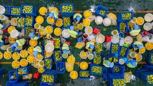(250417) -- KAMPONG SPEU, 17 abril, 2025 (Xinhua) -- Vista aérea tomada con un dron el 18 de marzo de 2025 de trabajadores pelando mangos en una fábrica de procesamiento de mango, en el distrito de Phnom Sruoch, en la provincia de Kampong Speu, Camboya. En el distrito de Phnom Sruoch, en el oeste de Camboya, la abundante luz solar, las lluvias abundantes y la tierra fértil proporcionan las condiciones naturales ideales para el cultivo del mango, que produce mangos de pulpa tierna y rico aroma. En la fábrica procesadora de mangos, con inversión y construida por Zhong Bao (Fujian) Food Science & Technology Co. Ltd. de China, en el distrito de Phnom Sruoch, en el oeste de Camboya, los mangos maduros se someten a procesos como lavado, pelado, rebanado, curado con azúcar y secado, transformándose finalmente en rebanadas de mango deshidratado, dulces y masticables. (Xinhua/Cheong Kam Ka) (rtg) (ra) (vf)