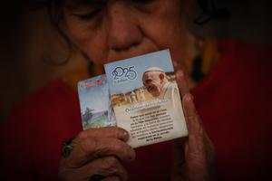 (250421) -- BOGOTA, 21 abril, 2025 (Xinhua) -- Una mujer sostiene una fotografía del papa Francisco durante una ceremonia en homenaje al pontífice después del anuncio de su fallecimiento, en Bogotá, capital de Colombia, el 21 de abril de 2025. El papa Francisco, nacido Jorge Mario Bergoglio, falleció el lunes a los 88 años de edad, anunció el Vaticano en un comunicado. El 266º pontífice de la Iglesia católica romana nació el 17 de diciembre de 1936 en Buenos Aires, Argentina, y asumió el pontificado en 2013. (Xinhua/Andrés Moreno) (am) (rtg) (ah) (ce)