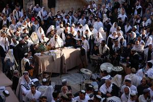 (250418) -- SAFED, 18 abril, 2025 (Xinhua) -- Imagen del 17 de abril de 2025 de devotos judíos asistiendo a una oración de la mañana de Shajarit para la Pascua, en Safed, en el norte de Israel. La Pascua (Pésaj) de este año se celebra en Israel desde el atardecer del 12 de abril hasta la noche del 19 de abril, en conmemoración del éxodo de los israelitas de la esclavitud en el antiguo Egipto hace unos 3.500 años. (Xinhua/David Cohen/JINI) (jg) (da) (ce)