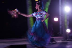 (250418) -- CIUDAD DE MEXICO, 18 abril, 2025 (Xinhua) -- Imagen del 17 de abril de 2025 de una bailarina del Ballet Folklórico de México de Amalia Hernández participando en la inauguración de Spora Festival del Bosque 2025, en la isleta del Lago Menor del Bosque de Chapultepec, en la Ciudad de México, capital de México. (Xinhua/Francisco Cañedo) (fc) (jg) (da) (vf)