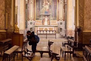 (250421) -- BUENOS AIRES, 21 abril, 2025 (Xinhua) -- Un hombre ora en la Catedral Metropolitana, en donde el papa...
