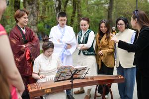 (250419) -- ALMATY, 19 abril, 2025 (Xinhua) -- Personas observan una presentación de Guzheng (cítara pulsada china) en el evento...