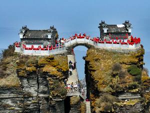 (250421) -- TONGREN, 21 abril, 2025 (Xinhua) -- Imagen del 15 de abril de 2025 de turistas visitando el Monte...