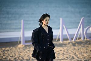 (250419) -- HAIKOU, 19 abril, 2025 (Xinhua) -- Imagen del 16 de abril de 2025 de una modelo presentando un...