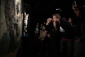 (250418) -- BUENOS AIRES, 18 abril, 2025 (Xinhua) -- Personas observan obras de la serie "Calaveras" del dúo artístico Mondongo,...