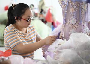 (250421) -- LU'AN, 21 abril, 2025 (Xinhua) -- Imagen del 15 de abril de 2025 de una empleada confeccionando un...