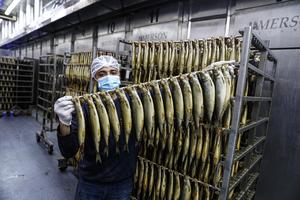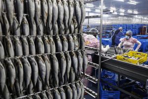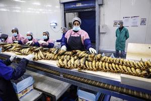 (250421) -- PUERTO SAID, 21 abril, 2025 (Xinhua) -- Imagen del 19 de abril de 2025 de trabajadores empaquetando pescados...