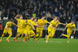 (250418) -- ROMA, 18 abril, 2025 (Xinhua) -- Imagen del 17 de abril de 2025 de jugadores de Bodo/Glimt festejando...