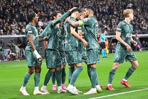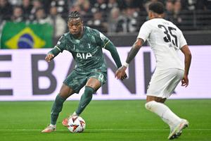 (250418) -- FRANKFURT, 18 abril, 2025 (Xinhua) -- Imagen del 17 de abril de 2025 de Dominic Solanke (c), de...
