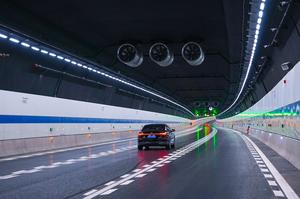 (250420) -- BEIJING, 20 abril, 2025 (Xinhua) -- Un vehículo circula en el interior de un túnel escudo a lo...