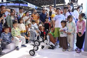 (250417) -- HAIKOU, 17 abril, 2025 (Xinhua) -- Personas observan un espectáculo de robots en la V Exposición Internacional de...