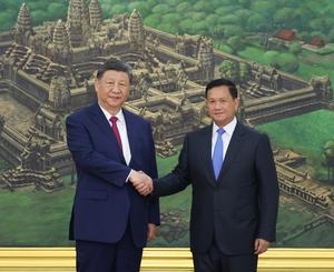 (250417) -- PHNOM PENH, 17 abril, 2025 (Xinhua) -- El presidente chino, Xi Jinping, sostiene conversaciones con el primer ministro...