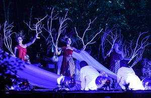 (250420) -- PASURUAN, 20 abril, 2025 (Xinhua) -- Imagen del 19 de abril de 2025 de artistas realizando una presentación...