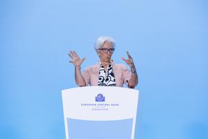 (250417) -- FRANKFURT, 17 abril, 2025 (Xinhua) -- La presidenta del Banco Central Europeo (BCE), Christine Lagarde, habla durante una...