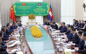 (250417) -- PHNOM PENH, 17 abril, 2025 (Xinhua) -- El presidente chino, Xi Jinping, sostiene conversaciones con el primer ministro...