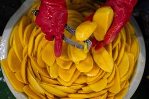 (250417) -- KAMPONG SPEU, 17 abril, 2025 (Xinhua) -- Imagen del 18 de marzo de 2025 de un trabajador rebanando...
