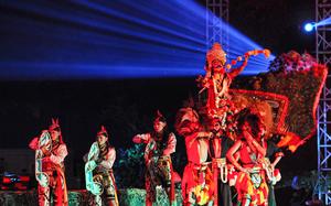 (250420) -- PASURUAN, 20 abril, 2025 (Xinhua) -- Imagen del 19 de abril de 2025 de artistas realizando una presentación...