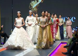 (250420) -- KARACHI, 20 abril, 2025 (Xinhua) -- Imagen del 19 de abril de 2025 de modelos presentando creaciones durante...