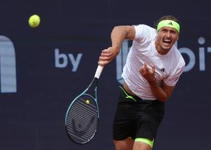 (250420) -- MUNICH, 20 abril, 2025 (Xinhua) -- Alexander Zverev sirve la pelota durante la final de individuales masculinos entre...