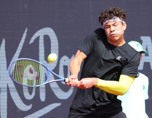 (250420) -- MUNICH, 20 abril, 2025 (Xinhua) -- Ben Shelton devuelve la pelota durante la final de individuales masculinos entre...