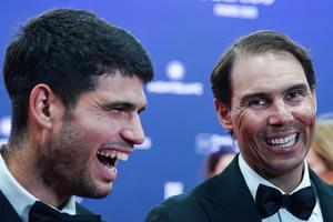 (250422) -- MADRID, 22 abril, 2025 (Xinhua) -- Imagen del 21 de abril de 2025 de los tenistas españoles, Carlos...
