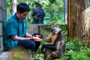 (250422) -- GUIYANG, 22 abril, 2025 (Xinhua) -- Imagen del 15 de abril de 2025 de un cuidador interactuando con...