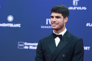 (250422) -- MADRID, 22 abril, 2025 (Xinhua) -- Imagen del 21 de abril de 2025 del tenista español, Carlos Alcaraz,...