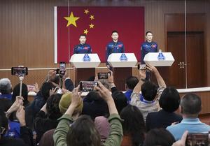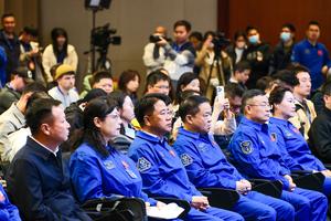 (250423) -- JIUQUAN, 23 abril, 2025 (Xinhua) -- Una conferencia de prensa sobre la misión tripulada de vuelo espacial Shenzhou-20...