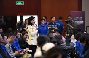 (250423) -- JIUQUAN, 23 abril, 2025 (Xinhua) -- Una periodista realiza una pregunta en una conferencia de prensa sobre la...