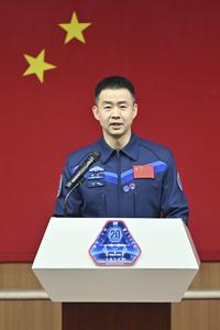 (250423) -- JIUQUAN, 23 abril, 2025 (Xinhua) -- El astronauta para la misión de vuelo espacial Shenzhou-20, Wang Jie, se...