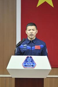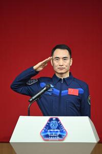 (250423) -- JIUQUAN, 23 abril, 2025 (Xinhua) -- El astronauta para la misión de vuelo espacial Shenzhou-20, Chen Zhongrui, se...