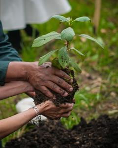 (250423) -- BOGOTA, 23 abril, 2025 (Xinhua) -- Imagen del 22 de abril de 2025 de funcionarios sembrando una planta...