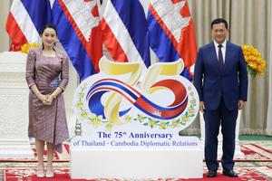 (250423) -- PHNOM PENH, 23 abril, 2025 (Xinhua) -- El primer ministro camboyano, Hun Manet (d), y la visitante primera...