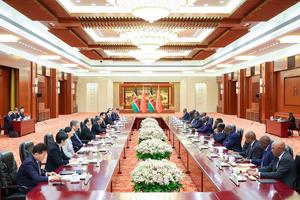 (250423) -- BEIJING, 23 abril, 2025 (Xinhua) -- El primer ministro chino, Li Qiang, se reúne con el presidente de...