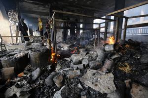 (250423) -- GAZA, 23 abril, 2025 (Xinhua) -- Palestinos son vistos en una escuela tras un ataque aéreo israelí, en...
