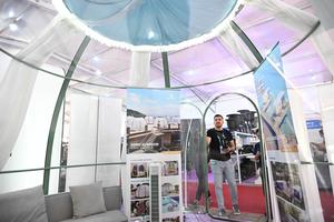 (250423) -- GUANGZHOU, 23 abril, 2025 (Xinhua) -- Un comprador extranjero revisa un producto de vivienda en un área que...