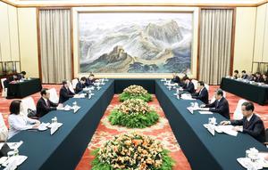 (250423) -- BEIJING, 23 abril, 2025 (Xinhua) -- Wang Huning, miembro del Comité Permanente del Buró Político del Comité Central...