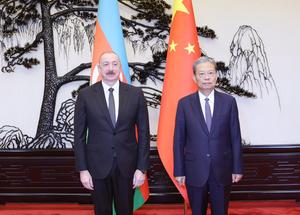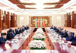 (250423) -- BEIJING, 23 abril, 2025 (Xinhua) -- El presidente chino, Xi Jinping, y el presidente azerbaiyano, Ilham Aliyev, firman...
