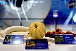 (250424) -- SHANGHAI, 24 abril, 2025 (Xinhua) -- Imagen del 23 de abril de 2025 de vegetales cultivados en el espacio exhibidos en la vista previa de una exposición científica que conmemora el 10º Día del Espacio de China en el Centro de Convenciones y Exposiciones de la Exposición Mundial de Shanghai, en Shanghai, en el este de China. El 24 de abril ha sido el Día del Espacio de China desde el 2016. La fecha marca el lanzamiento del primer satélite chino, el "Dongfanghong-1" al espacio en 1970. Las actividades para celebrar el 10º Día del Espacio de China se llevarán a cabo del 24 de abril al 5 de mayo en el Centro de Convenciones y Exposiciones de la Exposición Mundial de Shanghai. (Xinhua/Zhang Jiansong) (rtg) (ra) (vf)