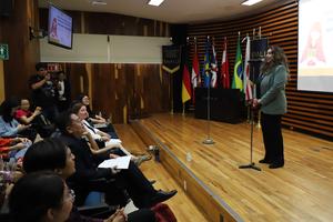 (250424) -- CIUDAD DE MEXICO, 24 abril, 2025 (Xinhua) -- Imagen del 23 de abril de 2025 de la directora mexicana del Instituto Confucio de la Universidad Nacional Autónoma de México (UNAM), Jenny Acosta, pronunciando un discurso durante el acto para conmemorar el Día Mundial del Libro, en la Ciudad de México, capital de México. Estudiantes del Instituto Confucio de la UNAM y aficionados a la literatura se reunieron el miércoles para conmemorar el Día Mundial del Libro con un recital de poesía y prosa clásica de China y México. (Xinhua/Daniel Augusto) (ml) (jg) (ah) (ce)