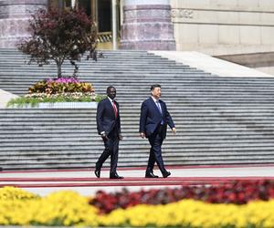 (250424) -- BEIJING, 24 abril, 2025 (Xinhua) -- El presidente chino, Xi Jinping, estrecha la mano del presidente keniano, William...