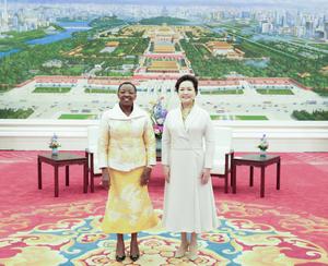 (250424) -- BEIJING, 24 abril, 2025 (Xinhua) -- Peng Liyuan, esposa del presidente chino, Xi Jinping, comparte una ceremonia del...