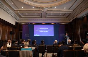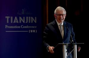 (250424) -- LONDRES, 24 abril, 2025 (Xinhua) -- Sherard Cowper-Coles, presidente del Consejo Empresarial China-Reino Unido, pronuncia un discurso en...