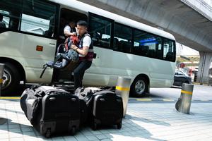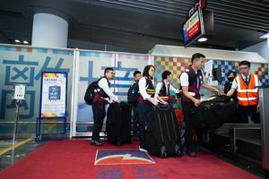 (250424) -- MACAO, 24 abril, 2025 (Xinhua) -- Integrantes del Equipo Internacional de Emergencias Médicas de China (Macao) transportan equipaje...