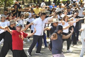 (250427) -- CIUDAD DE MEXICO, 27 abril, 2025 (Xinhua) -- Personas participan en la clase "Unete al Movimiento: Tai Chi...