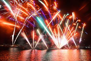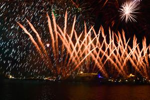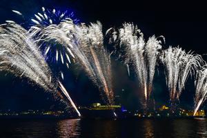 (250426) -- LA VALETA, 26 abril, 2025 (Xinhua) -- Imagen del 25 de abril de 2025 de fuegos artificiales iluminando...