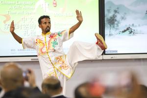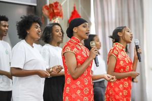 (250426) -- ADIS ABEBA, 26 abril, 2025 (Xinhua) -- Imagen del 25 de abril de 2025 de estudiantes etíopes interpretando...