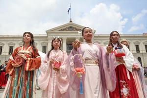 (250426) -- SAN SALVADOR, 26 abril, 2025 (Xinhua) -- Imagen del 25 de abril de 2025 de estudiantes del Instituto...