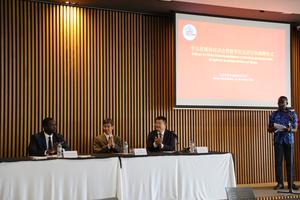 (250426) -- BISSAU, 26 abril, 2025 (Xinhua) -- El embajador chino en Guinea-Bissau, Yang Renhuo (2-i), el ministro de Comunicación...