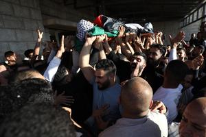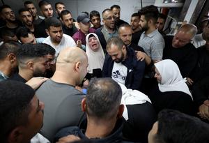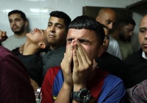 (250426) -- NAPLUSA, 26 abril, 2025 (Xinhua) -- Imagen del 25 de abril de 2025 de personas lamentándose por el...